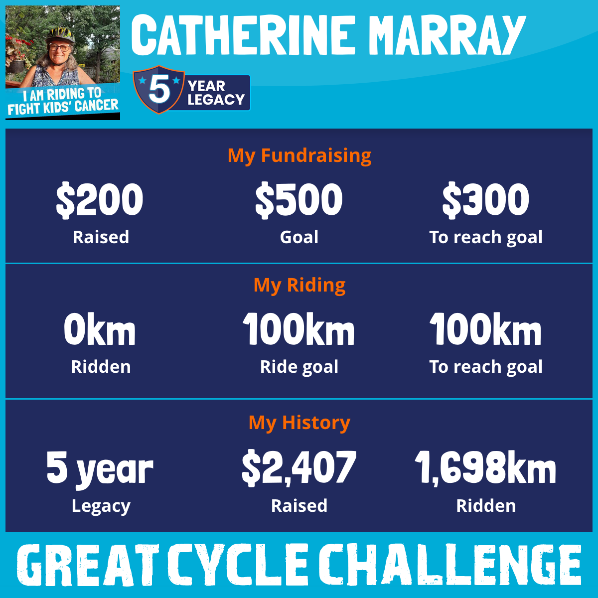 This August, I am taking part in the Great Cycle Challenge to fight kids' cancer!