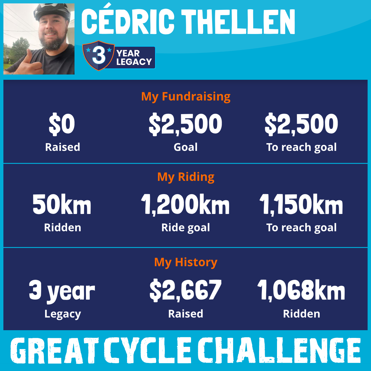 1,018 km Ridden$2,667 Raised2023