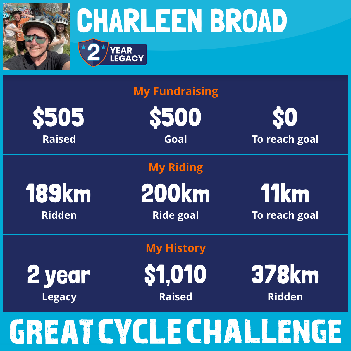 189 km Ridden$505 Raised2026