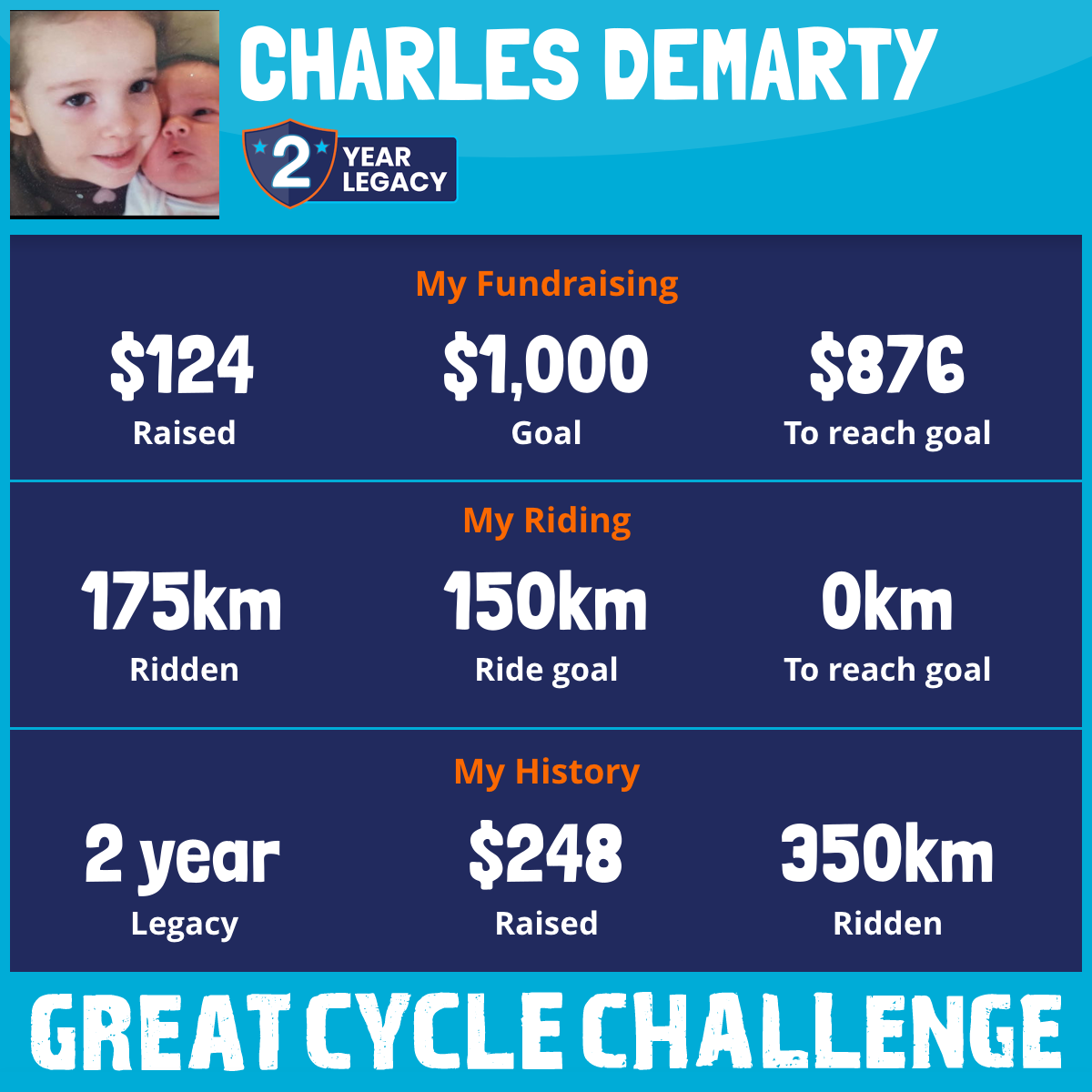 175 km Ridden$124 Raised2026