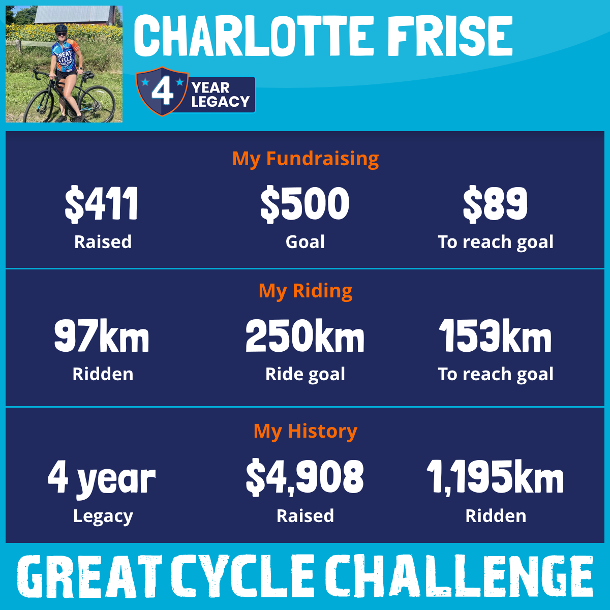 143 km Ridden$411 Raised2026