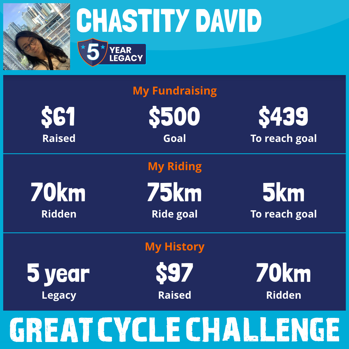 70 km Ridden$61 Raised2026