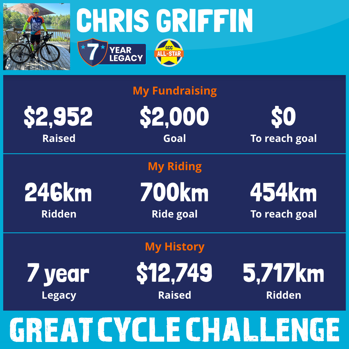 852 km Ridden$3,397 Raised2026