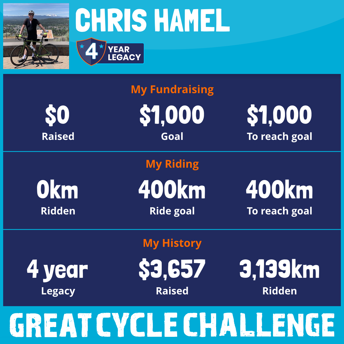 2,289 km Ridden$3,657 Raised2021