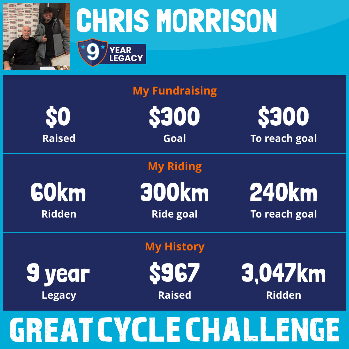 303 km Ridden$120 Raised2017