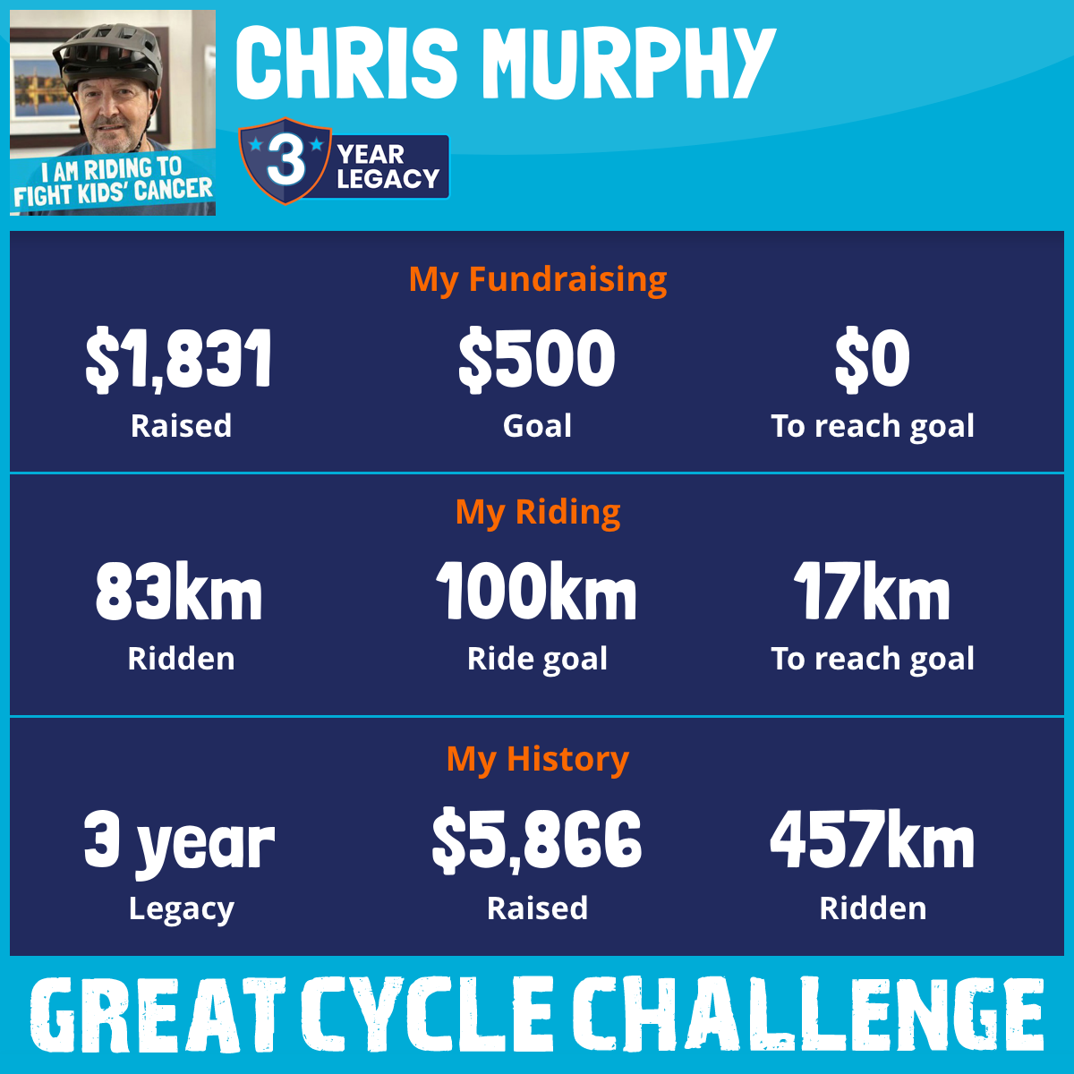 I am excited to be part of the Great Bike Challenge.