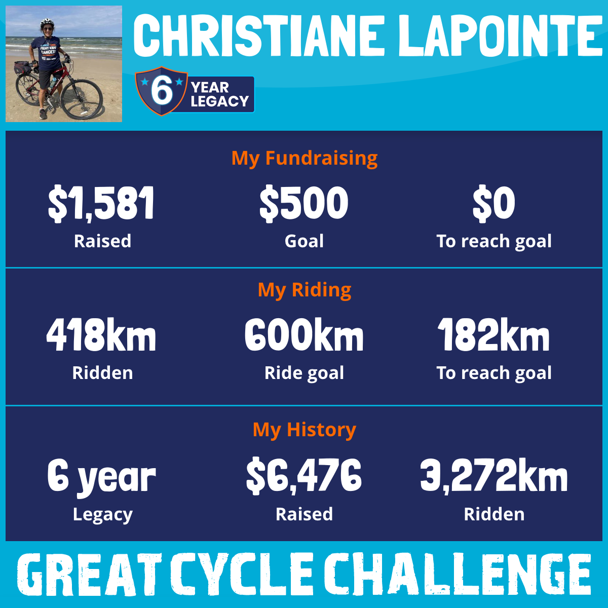 600 km Ridden$1,130 Raised2023