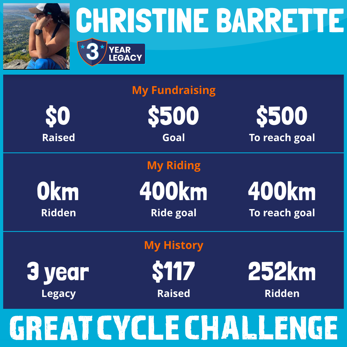 252 km Ridden$117 Raised2018