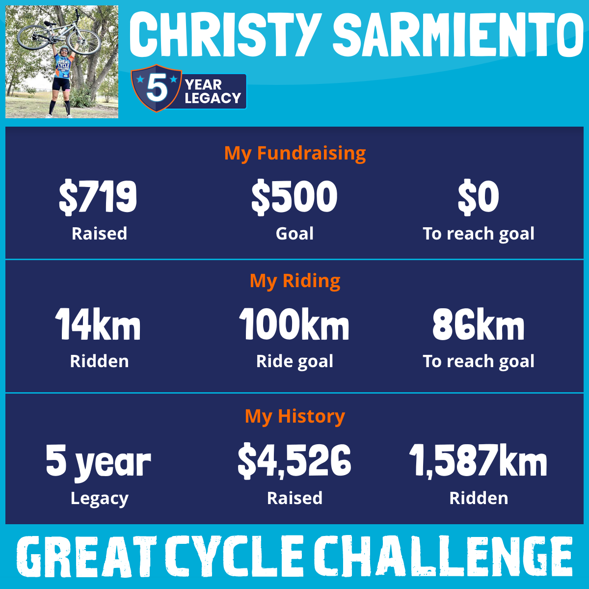 170 km Ridden$1,204 Raised2026