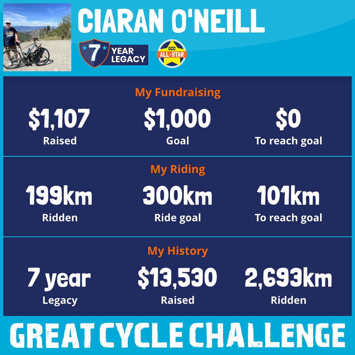 310 km Ridden$1,438 Raised2026