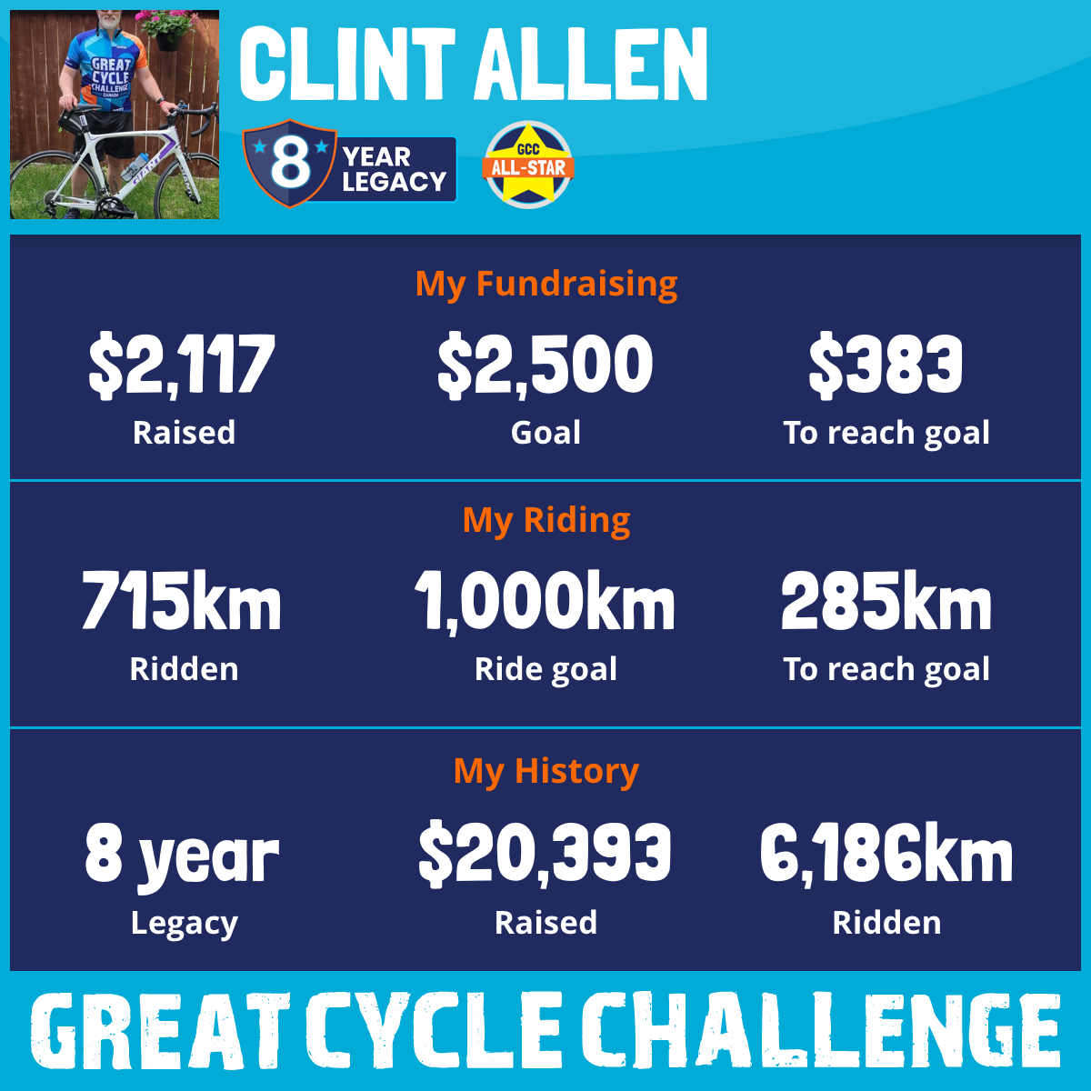 I am riding 200 km for Joy Allen. Arabella Allen. Larry Muldrew. Please sponsor me and support my challenge to fight kids' cancer and save little lives.