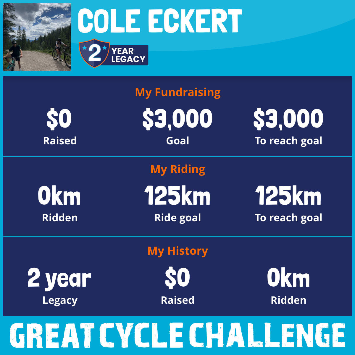 2 Aug 2025I came across this challenge through instagram, perfect timing as I recently purchased my own mountain bike. I thought it was the perfect excuse to start this challenge to see how far I can ride in 1 month and how much I can raise to help kids fight a little more for them to experience how beautiful life itself is. It would be cool to inspire others in starting this challenge, because if I don’t then who will!