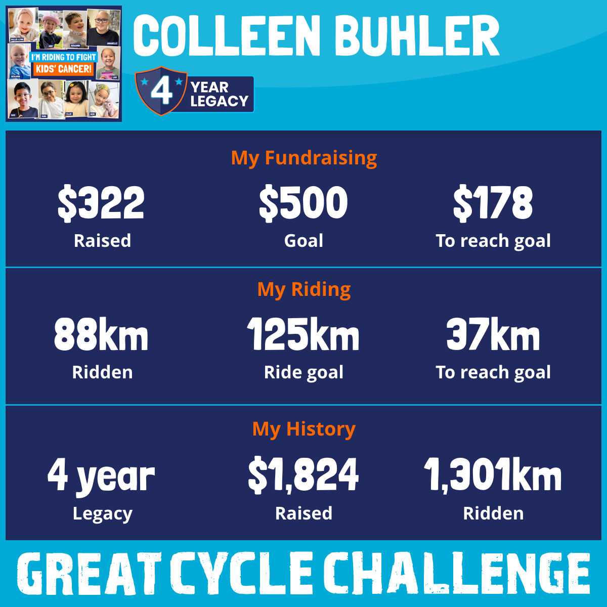 This June, I am taking part in the Great Cycle Challenge to fight kids' cancer!