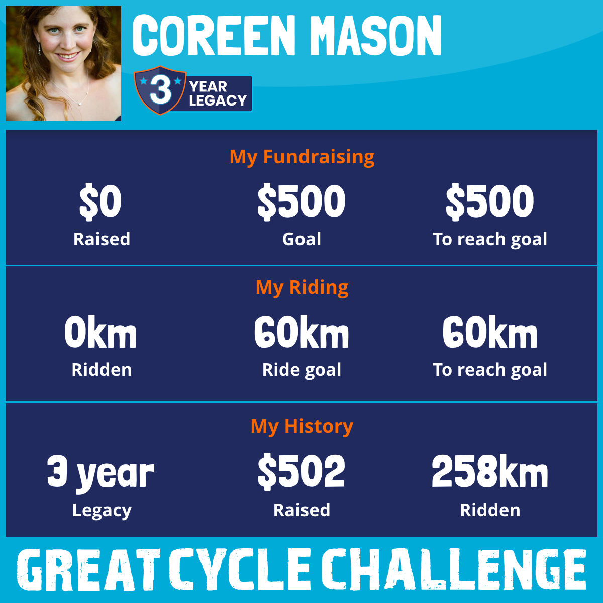 I am riding 60 km for Audrey. Please sponsor me and support my challenge to fight kids' cancer and save little lives.