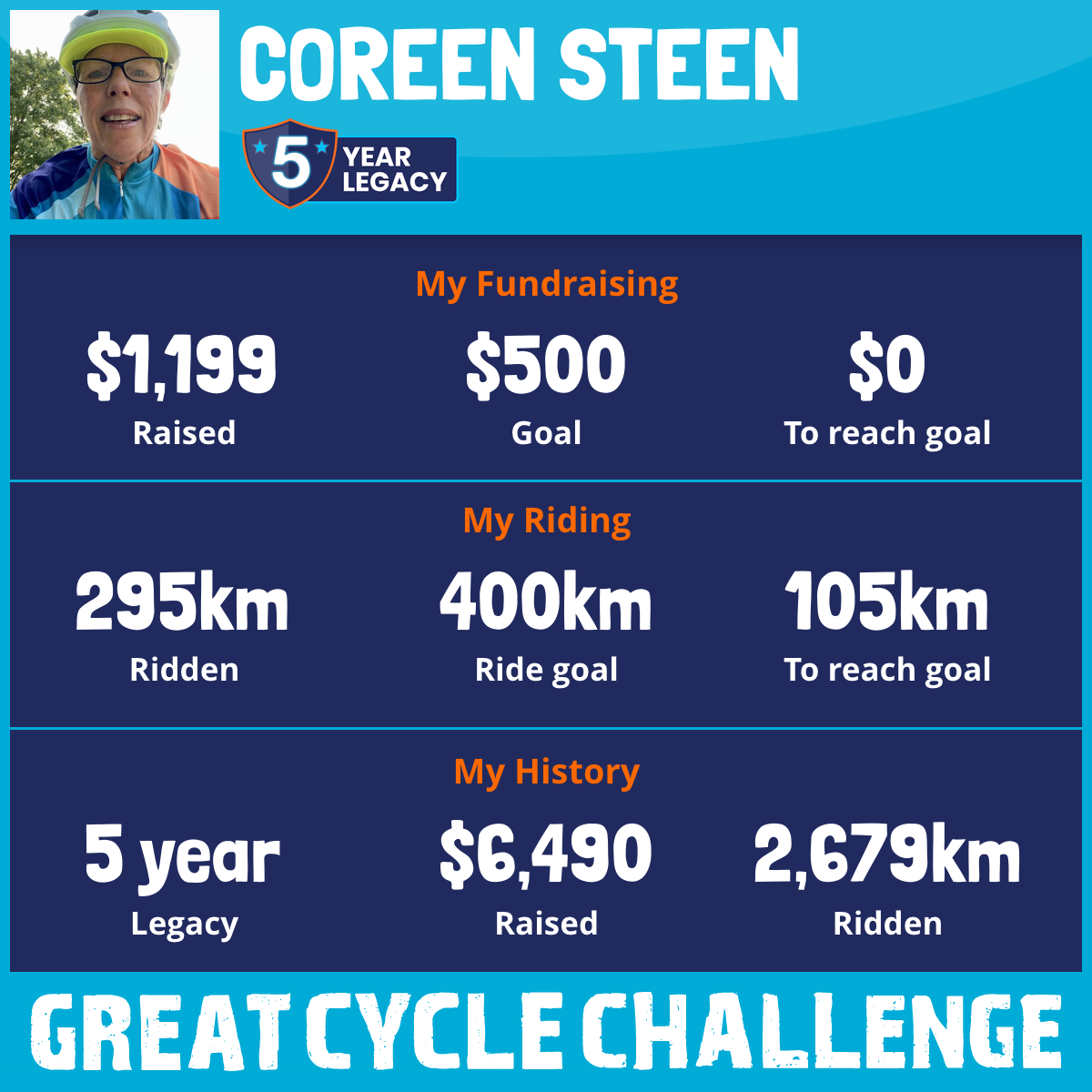 664 km Ridden$1,177 Raised2021