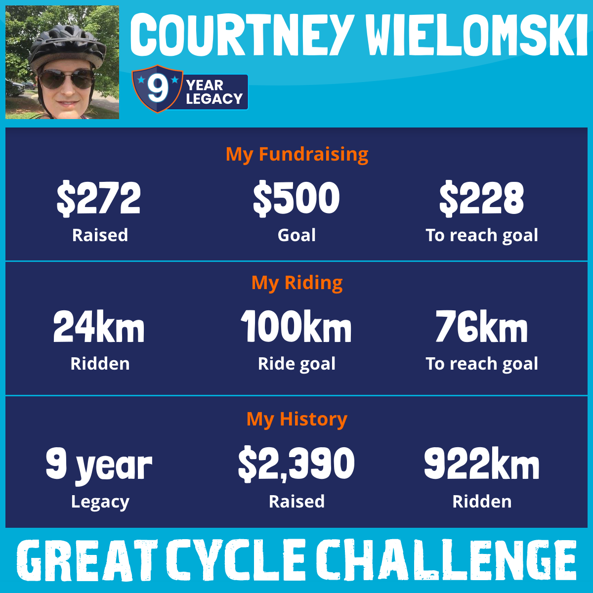 90 km Ridden$379 Raised2016