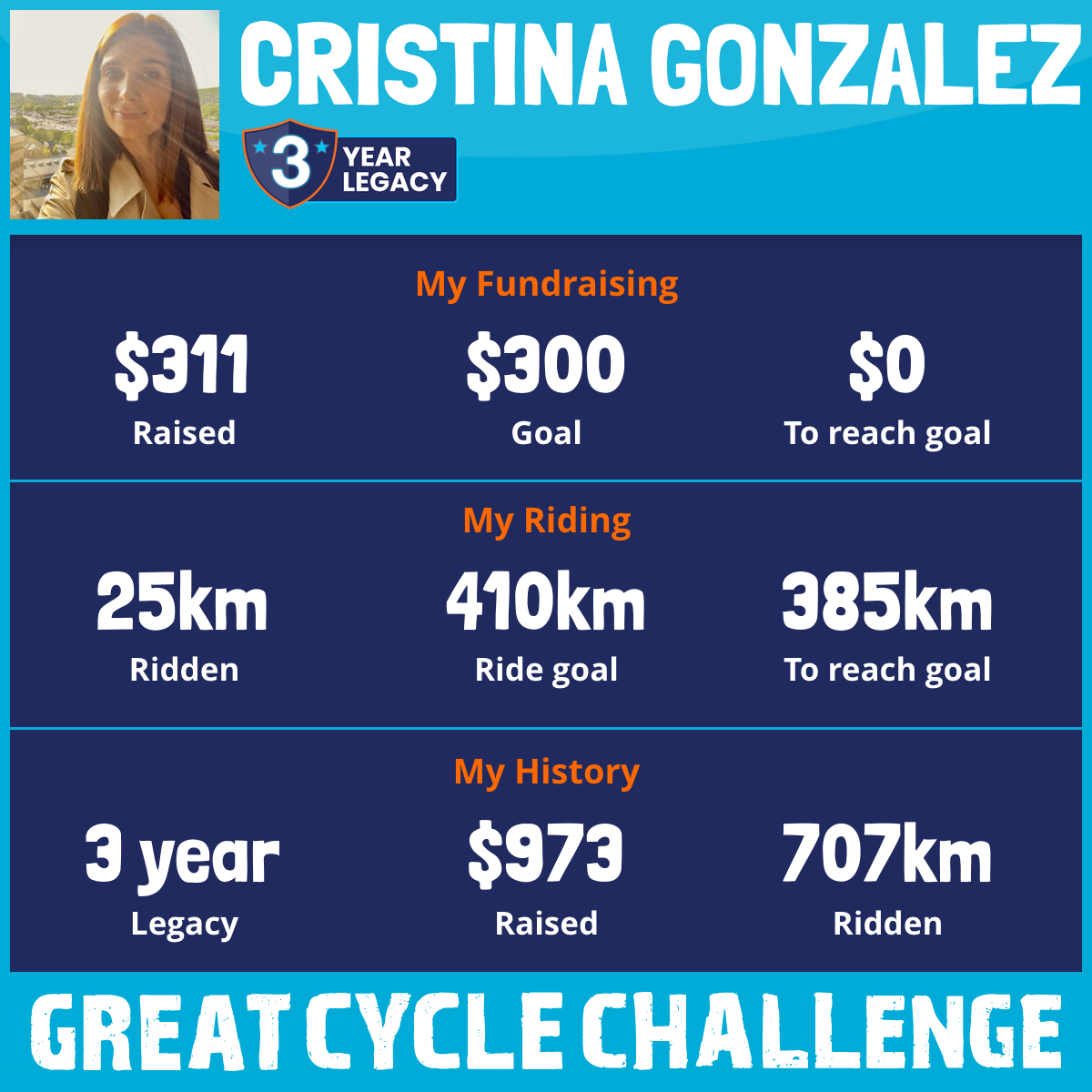 I did it! Last month I pedaled 410.1km in the Great Cycle Challenge to fight kids' cancer! A big THANK YOU to all our amazing sponsors, your support kept me pedaling throughout the month to reach my goal.
