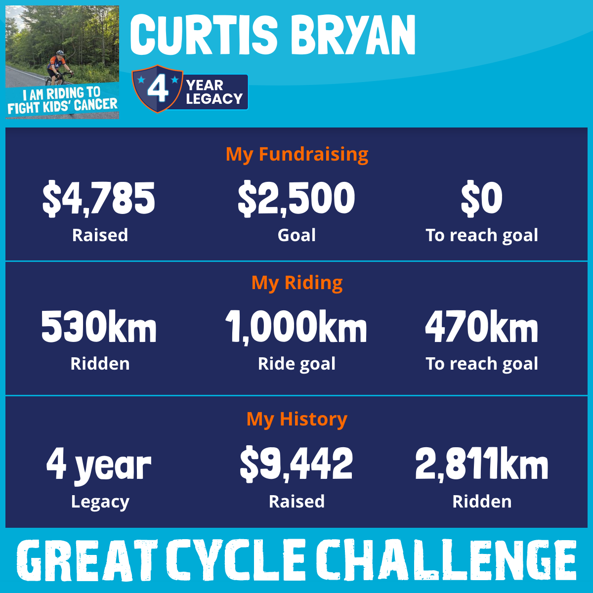 1,180 km Ridden$4,903 Raised2026