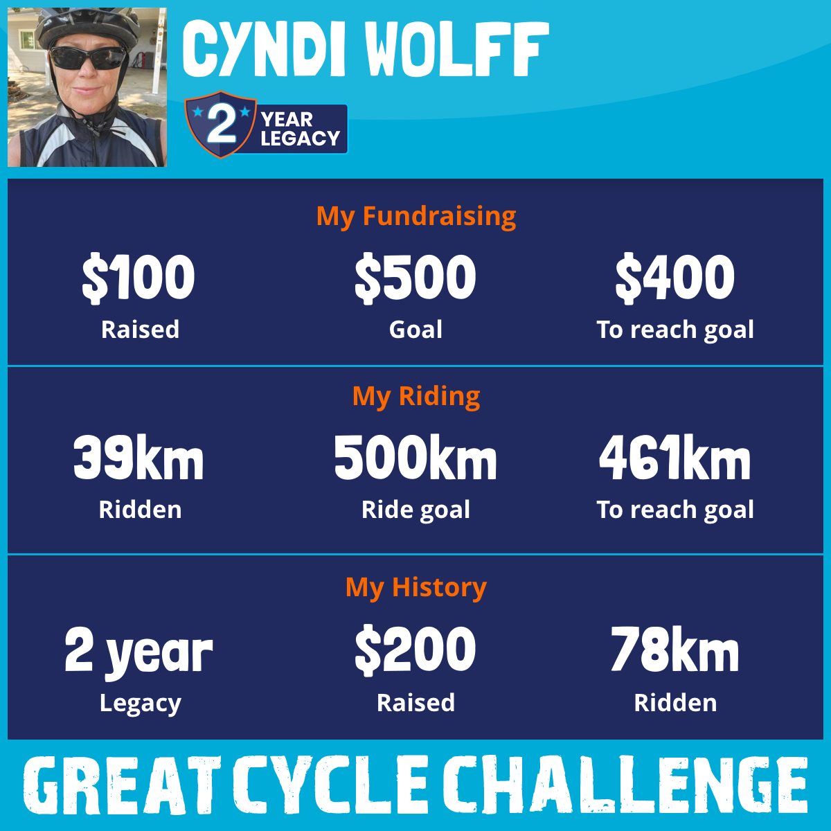 39 km Ridden$100 Raised2026