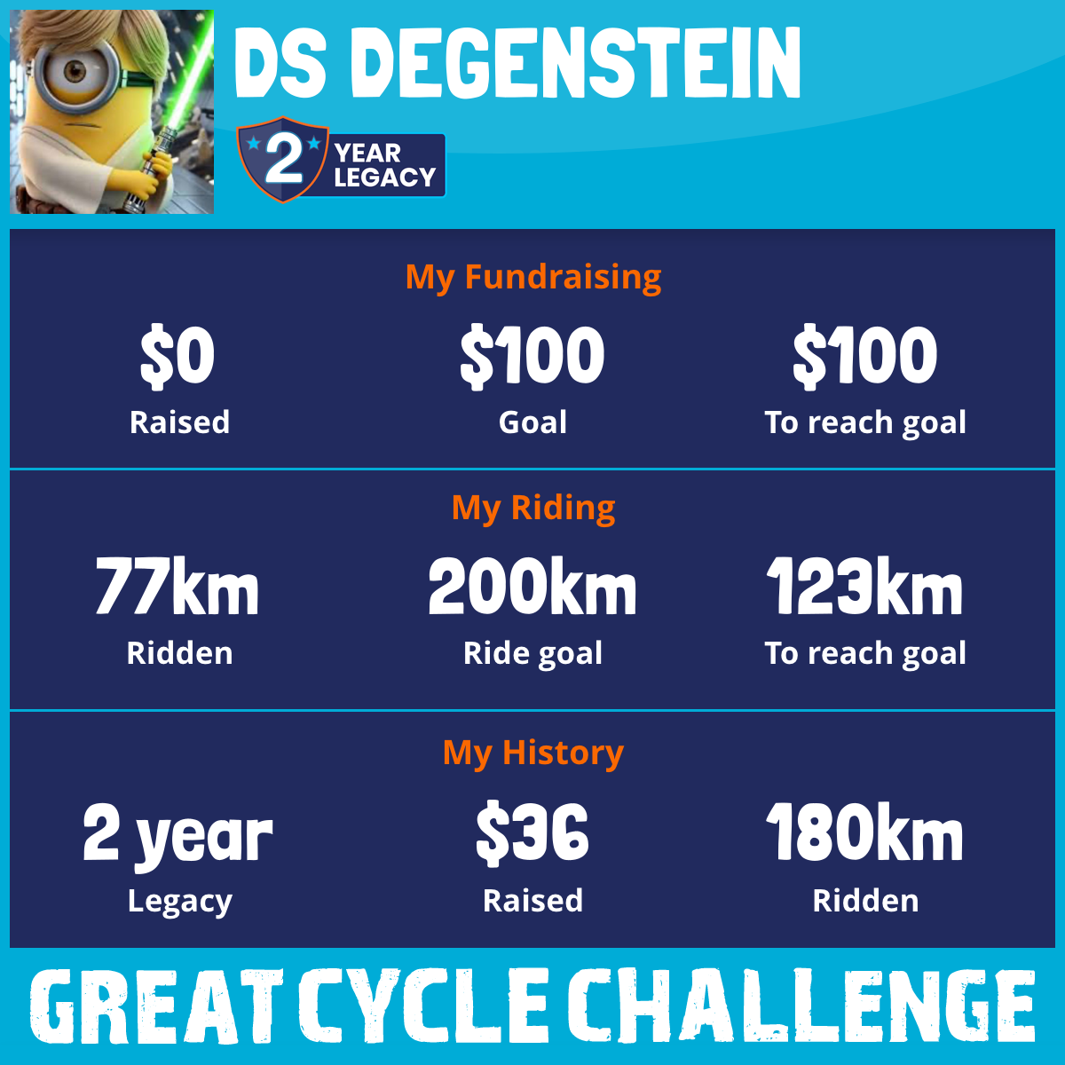 This August, I am taking part in the Great Cycle Challenge to fight kids' cancer remembering Robbie Wan Kenobi! We sure do miss him, but his spirit lives in the Force.