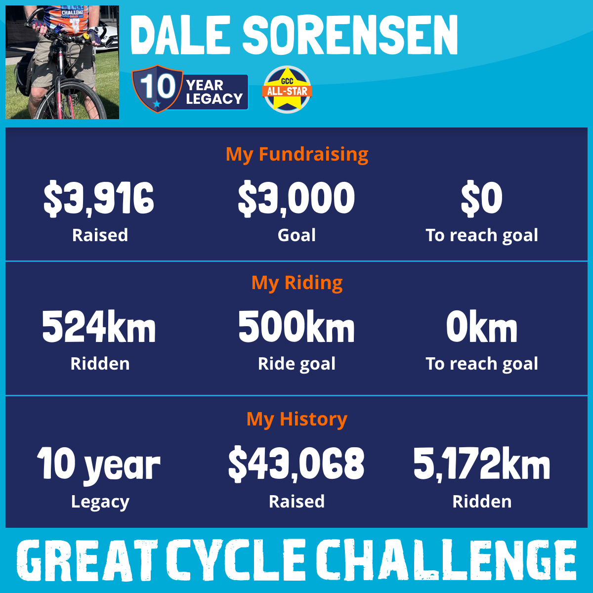 28 Aug 2025I've crushed my initial distance target of 500km, I've now increased it to 900km! I also increased my fundraising target from $3,000 to $4,500, and I'm close to getting there!
