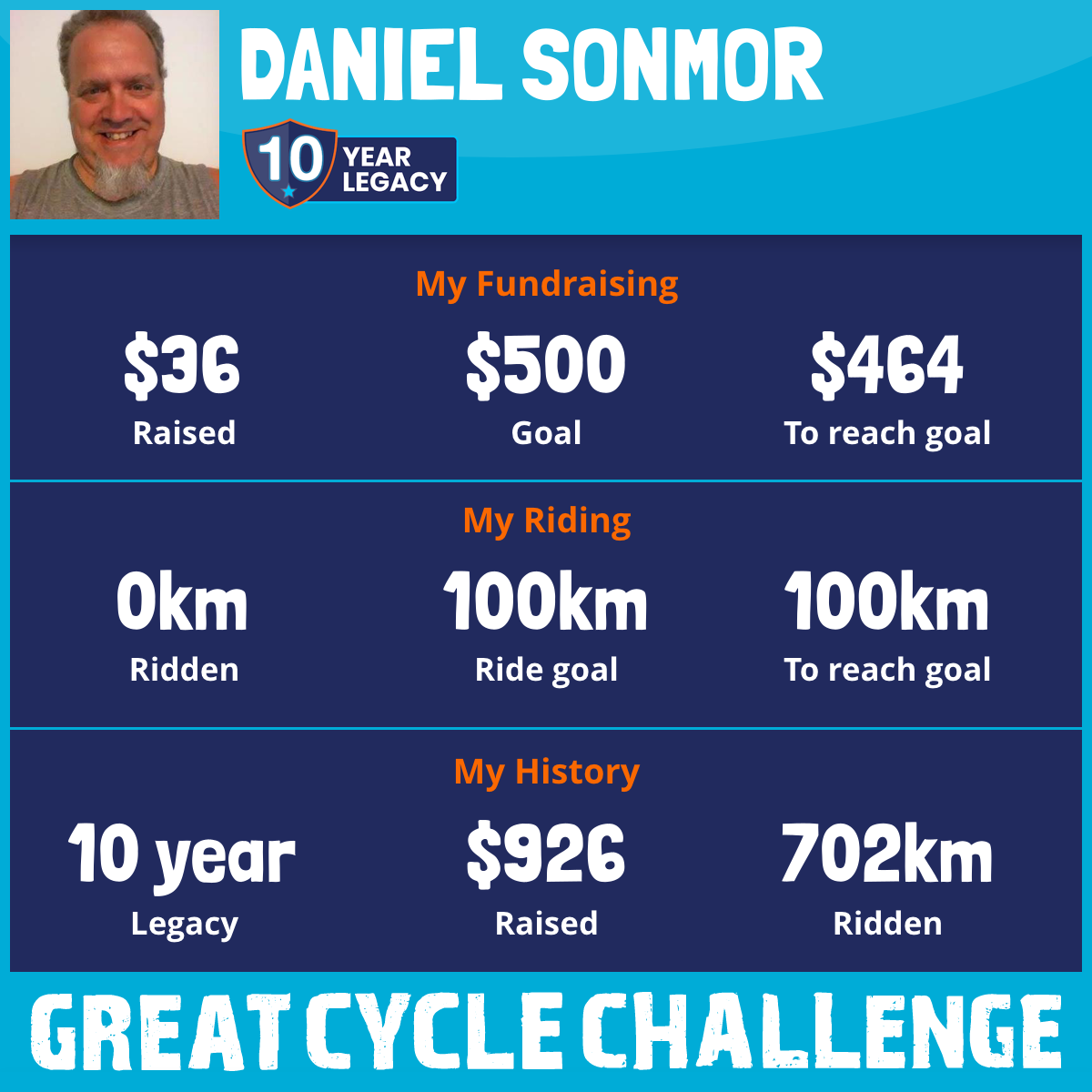 I am riding 100 km in memory of Vince and Christine. Please sponsor me and support my challenge to fight kids' cancer and save little lives.