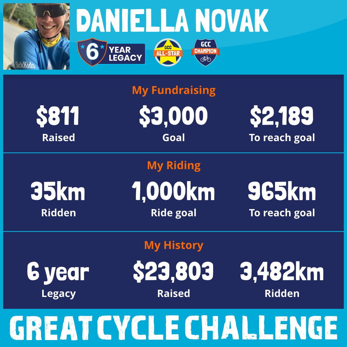 For the past 5 years I’ve spent 1 month dedicated to the Great Cycle Challenge to fight kids' cancer! And this year, I’ve committed to ride 1500km.