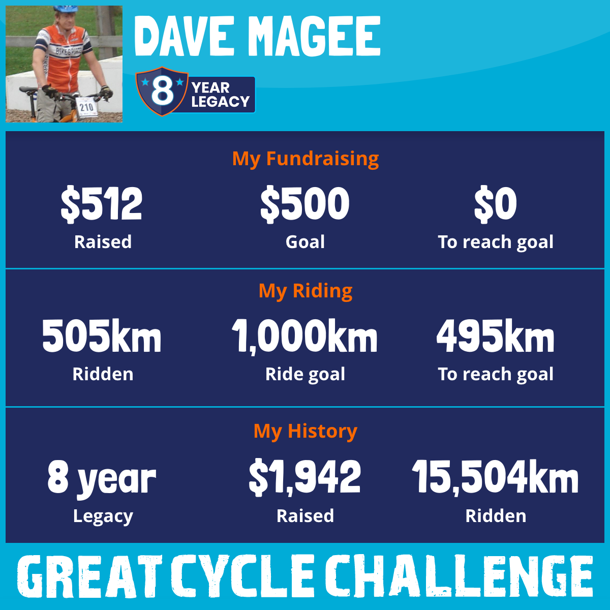 I am riding 1,000 km in memory of my dad, Jim Magee. Please sponsor me and support my challenge to fight kids' cancer and save little lives.