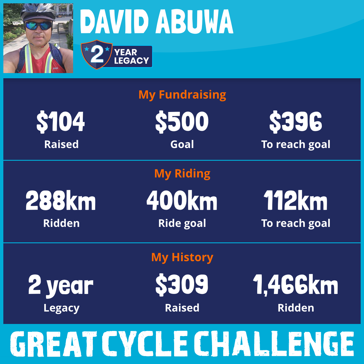 2,098 km Ridden$501 Raised2026
