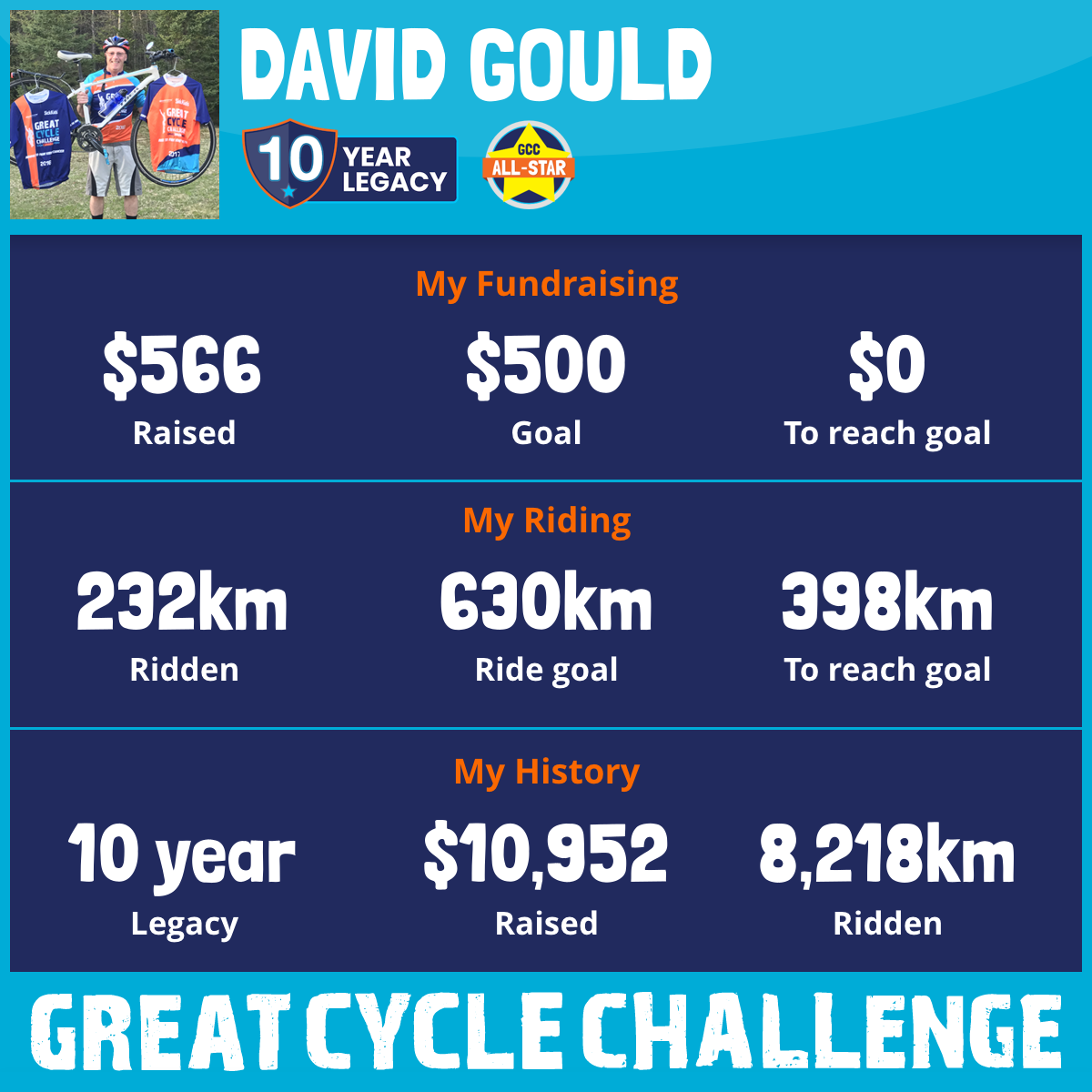 1,006 km Ridden$1,075 Raised2023