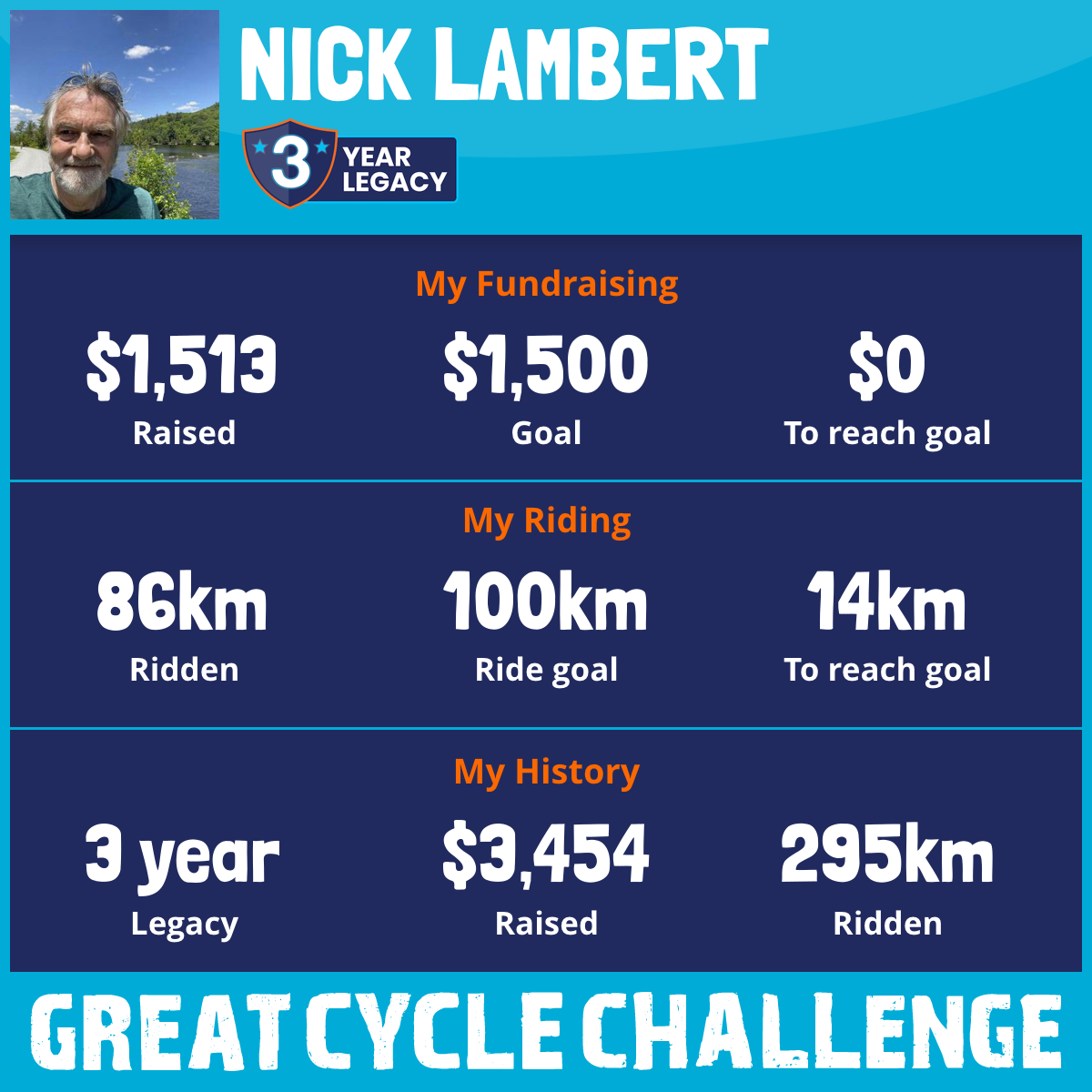 This August, I am taking part in the Great Cycle Challenge for the third time to fight kids' cancer. Since I've already reached my initial $500 donation goal thanks to supporter generosity, I raised it to $750. But I've reached that too, so raised it again to $1200, thanks to my great supporters. And now we've surpassed that goal too!! What wonderful friends and family you all are❣️