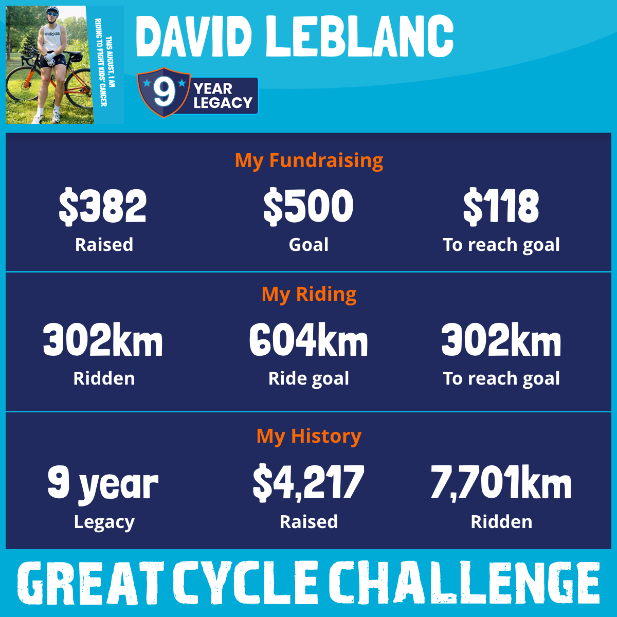 This August, I am taking part in the Great Cycle Challenge to fight kids' cancer!