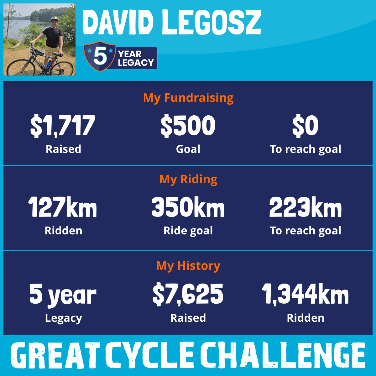 301 km Ridden$1,599 Raised2023