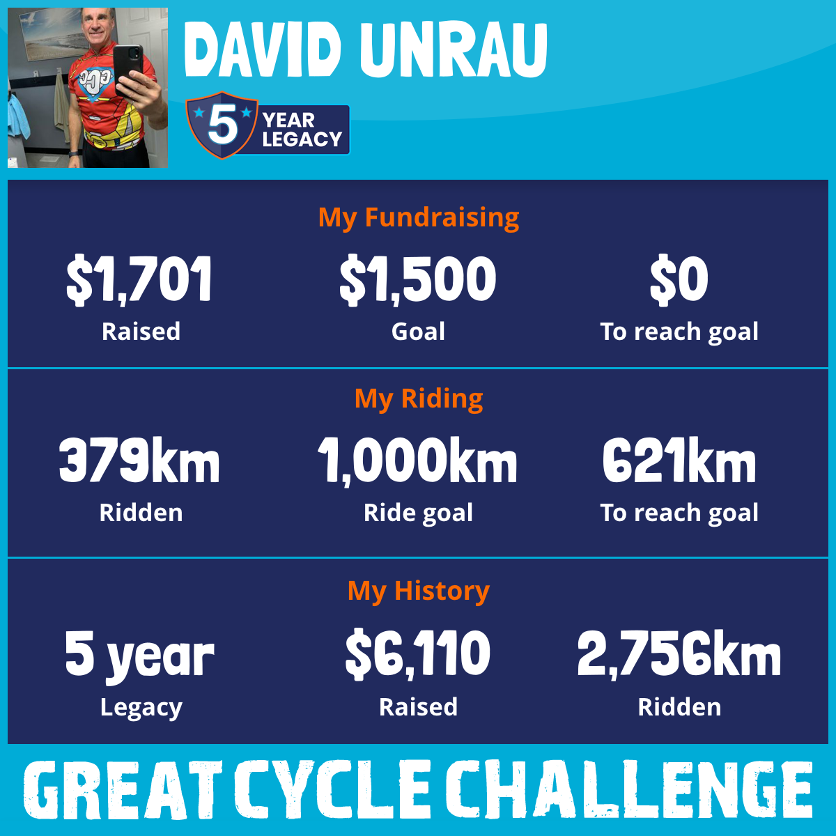 1,001 km Ridden$1,655 Raised2022