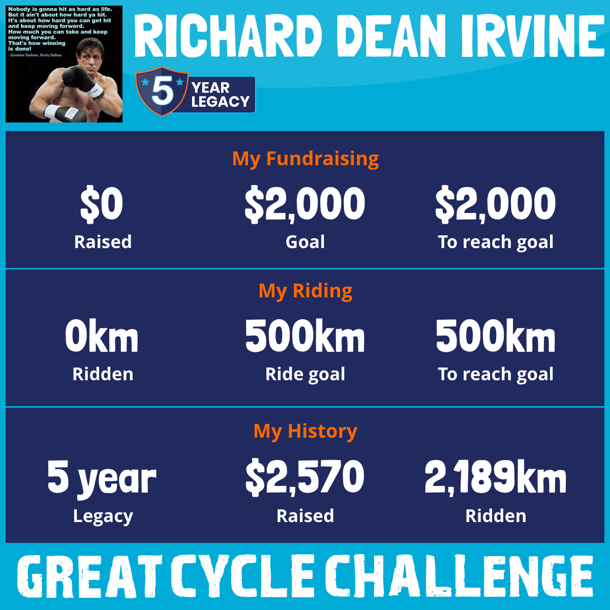 I am riding 500 km for my Dad, Richard, Coach Paul Bowes and myself. Please sponsor me and support my challenge to fight kids' cancer and save little lives.