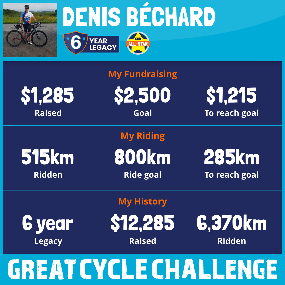 1,060 km Ridden$1,804 Raised2023