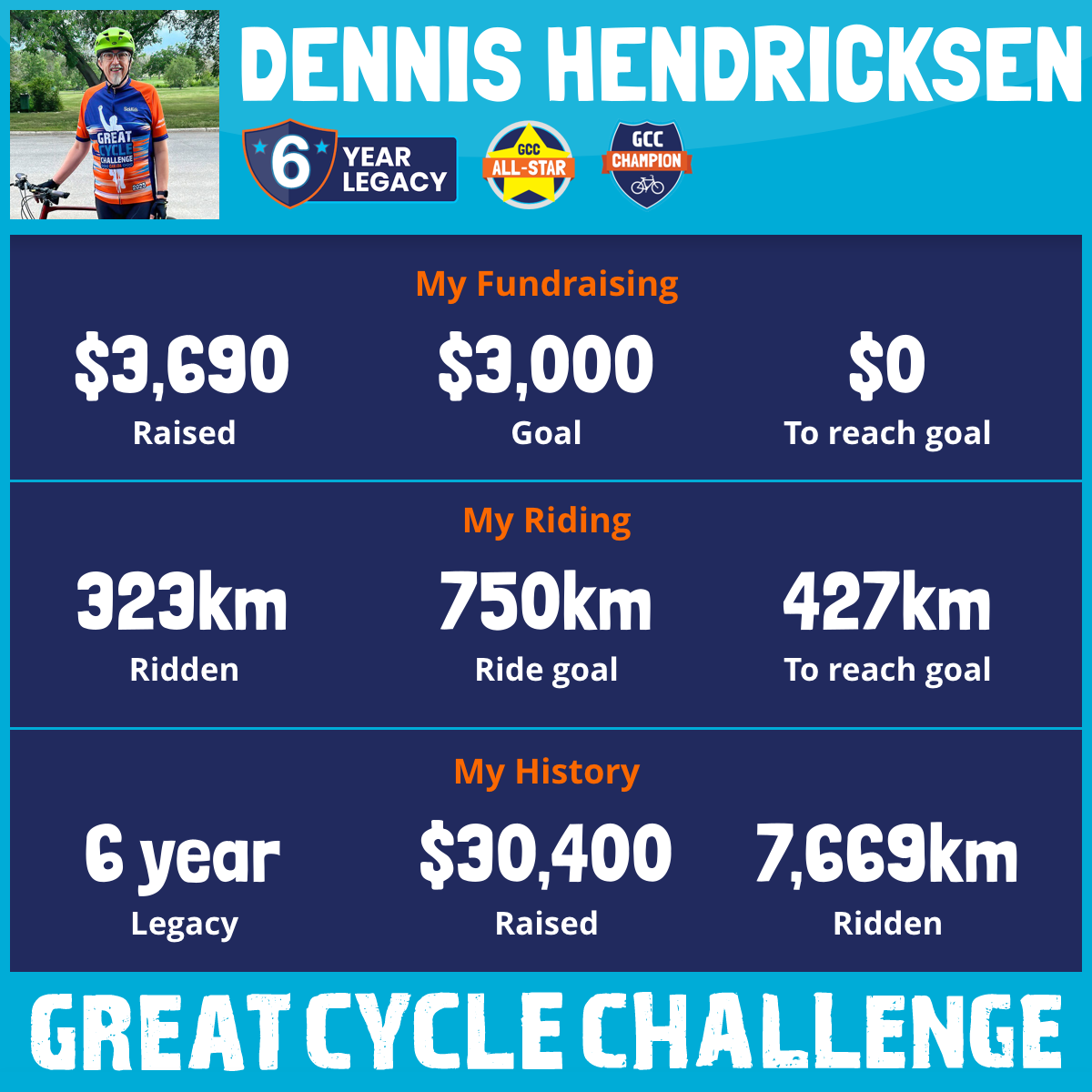 1,087 km Ridden$7,985 Raised2025