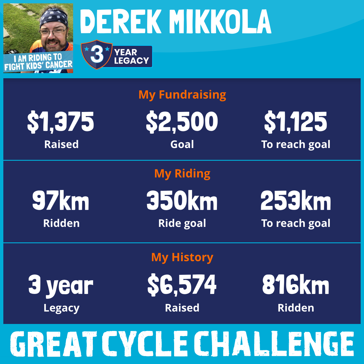 This August, I am taking part in the Great Cycle Challenge to fight kids' cancer!