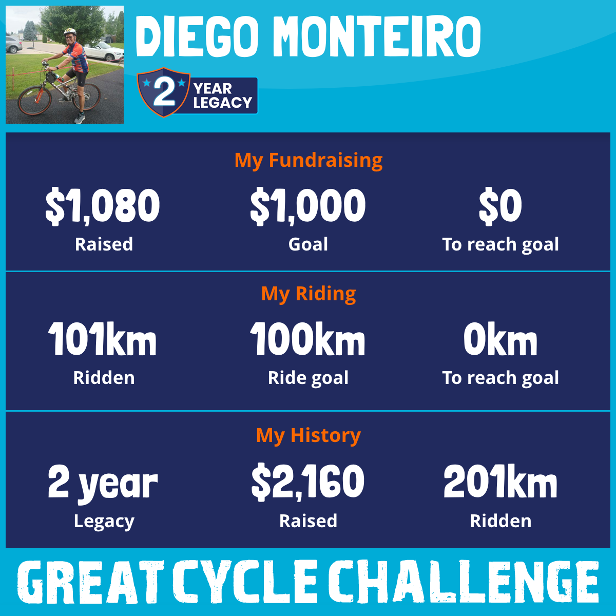 101 km Ridden$1,080 Raised2026