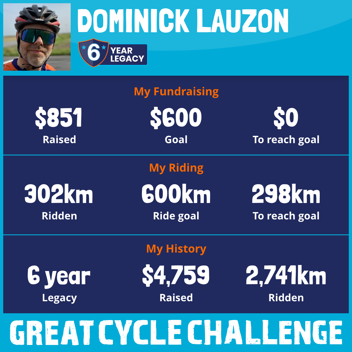 829 km Ridden$1,109 Raised2025