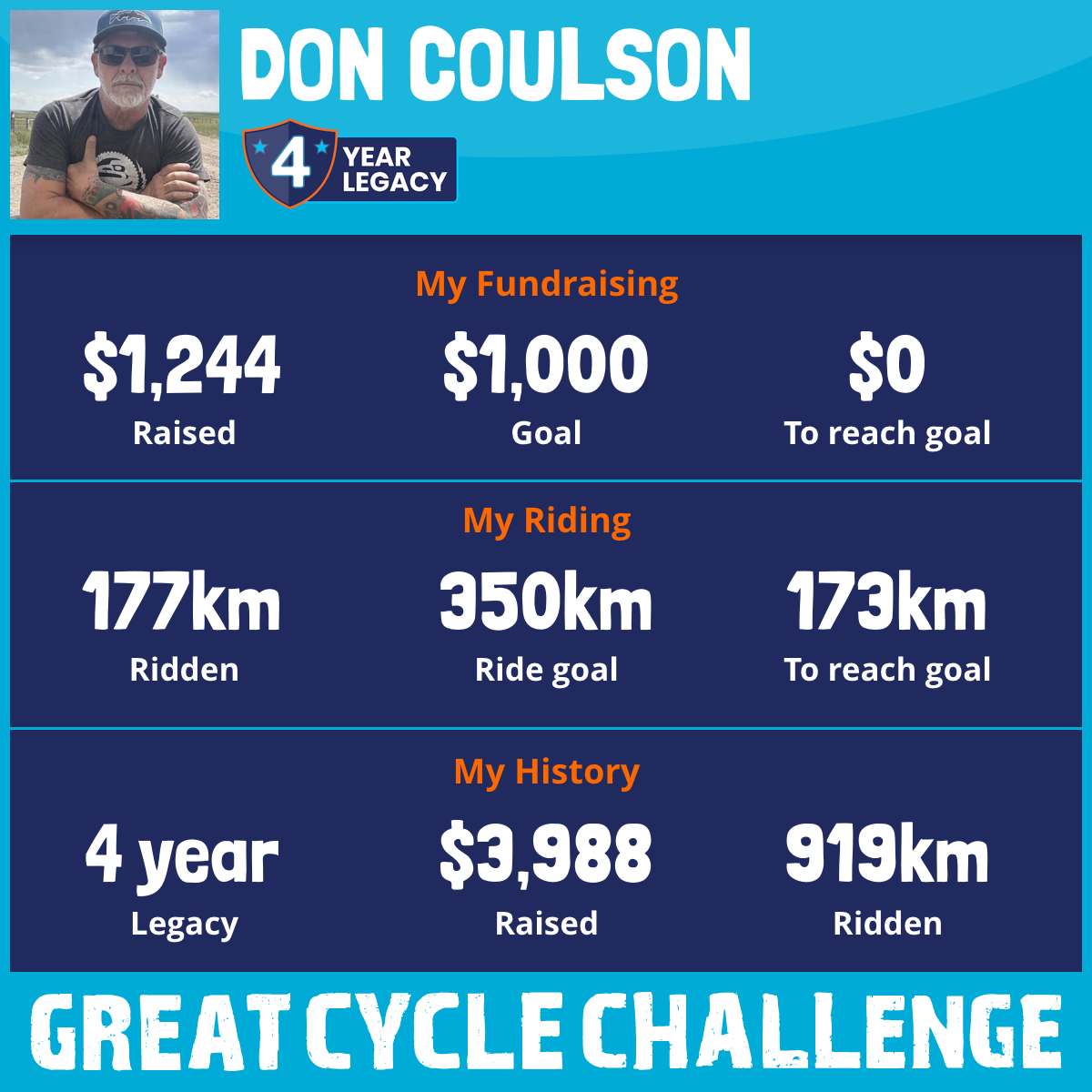 353 km Ridden$1,369 Raised2026