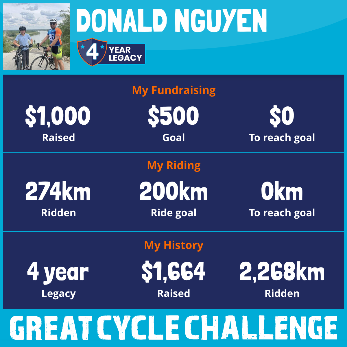 3,079 km Ridden$1,026 Raised2026