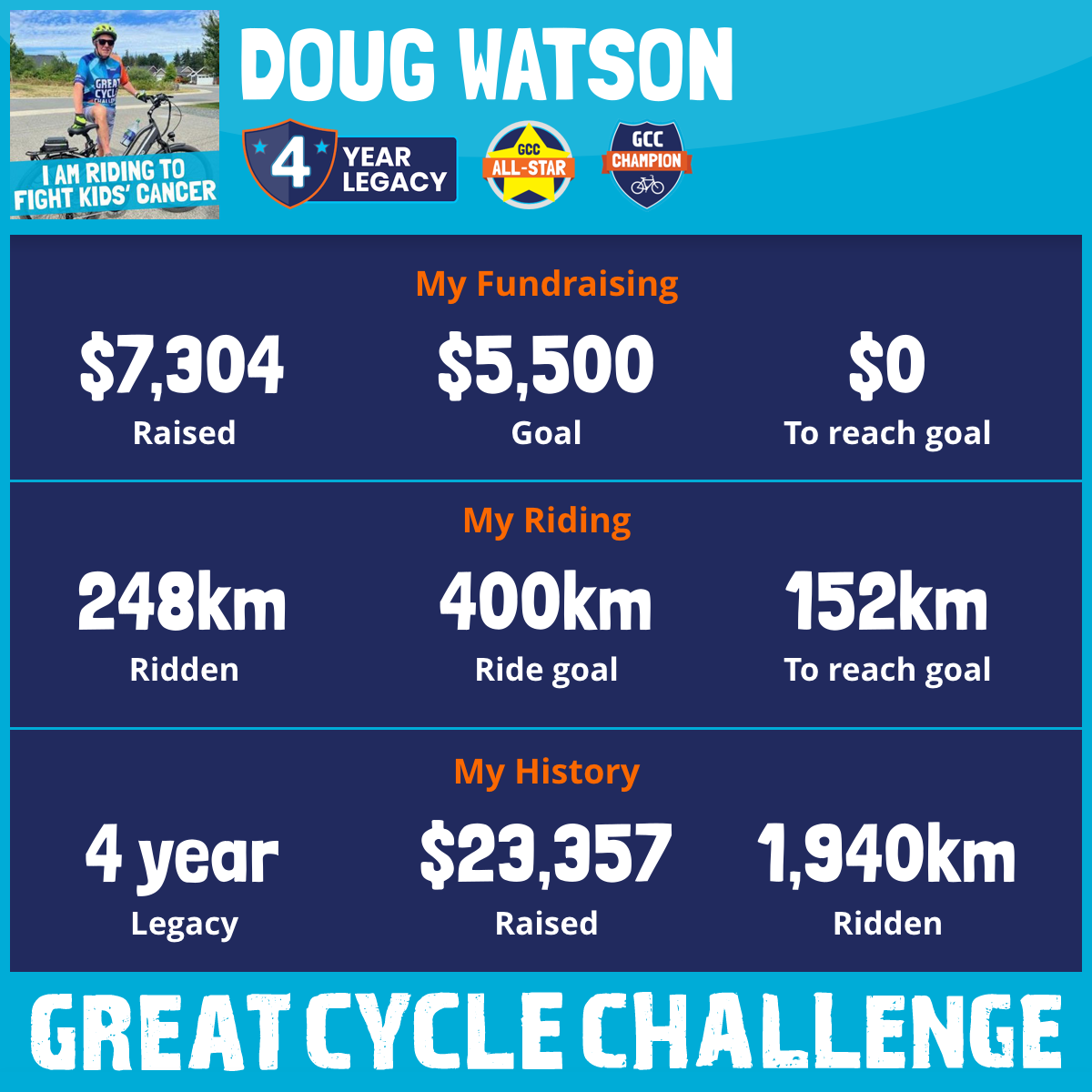 This August, I am taking part in the Great Cycle Challenge to fight kids' cancer!