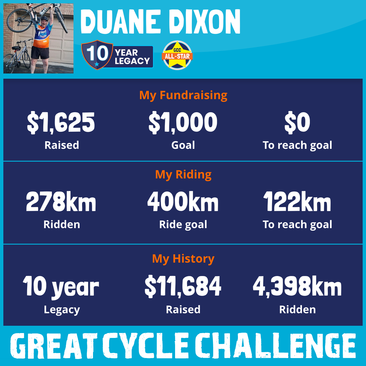 896 km Ridden$1,294 Raised2024