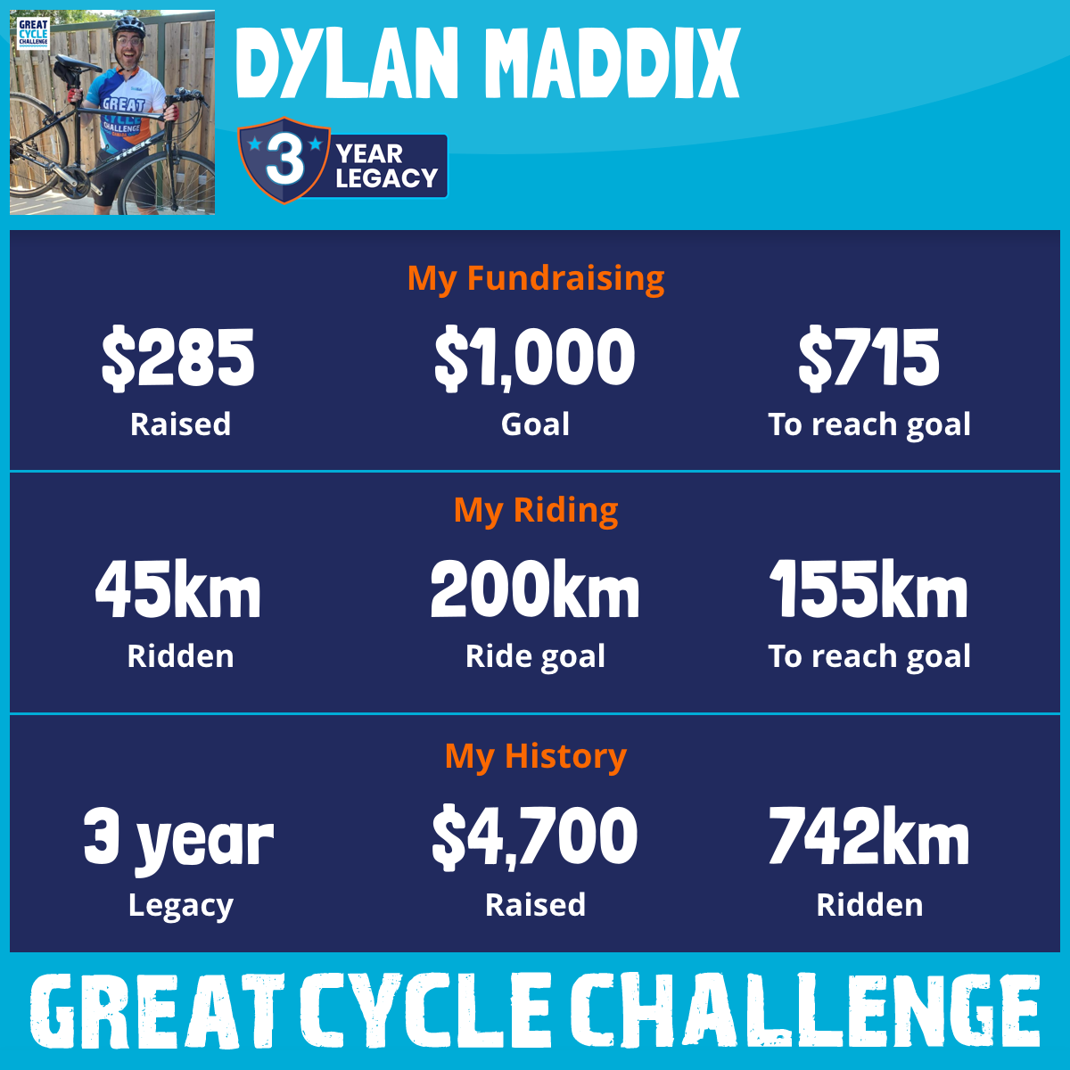 191 km Ridden$1,522 Raised2024