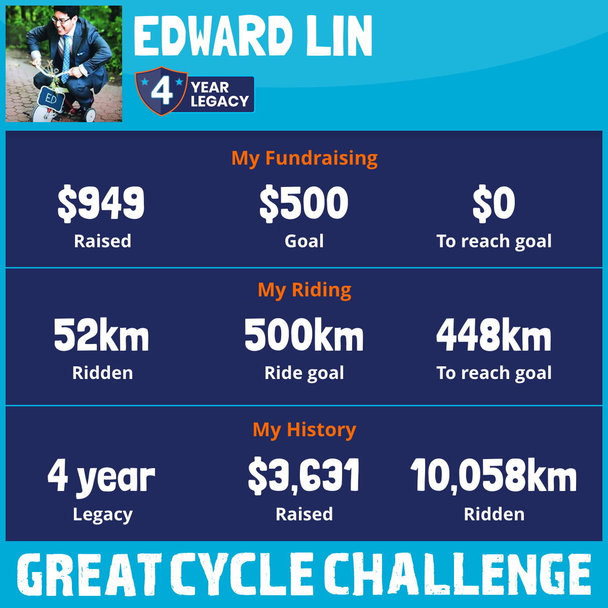 2,401 km Ridden$949 Raised2026