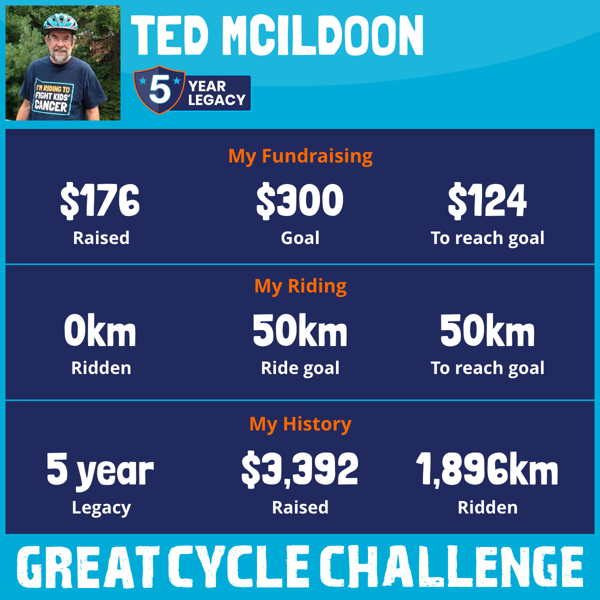 This August, I was going for my fifth year in the Great Cycle Challenge to fight kids' cancer, but I probably won't get to ride this year after all..