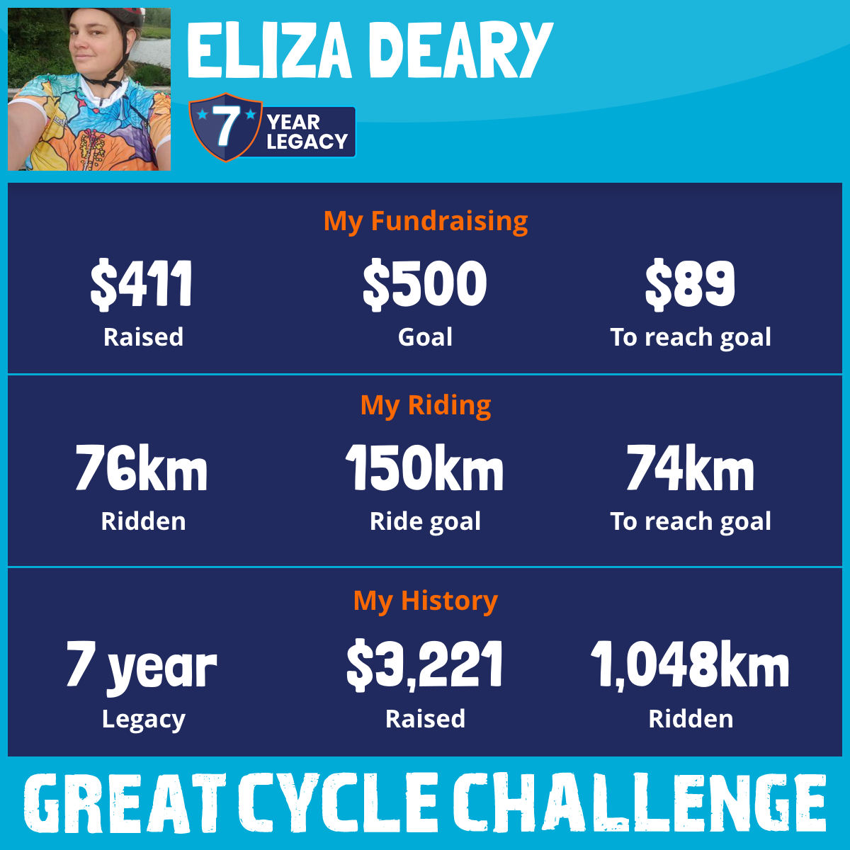 85 km Ridden$152 Raised2022
