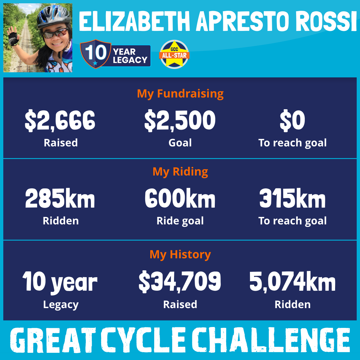502 km Ridden$4,299 Raised2019