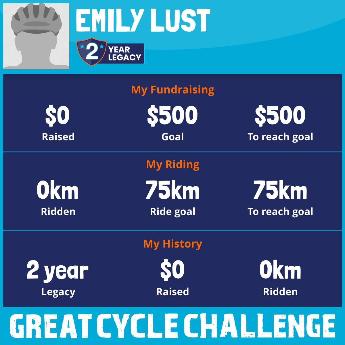 I am riding 75 km for my dad, Patrick. Please sponsor me and support my challenge to fight kids' cancer and save little lives.